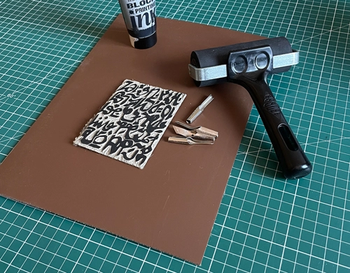 Matériel : papier, plaque de vinyle/linoléum, gouges, encre linogravure ou typographique, rouleau encreur, baren (ou dos d’une cuillère à soupe), papier calque ou carbone.